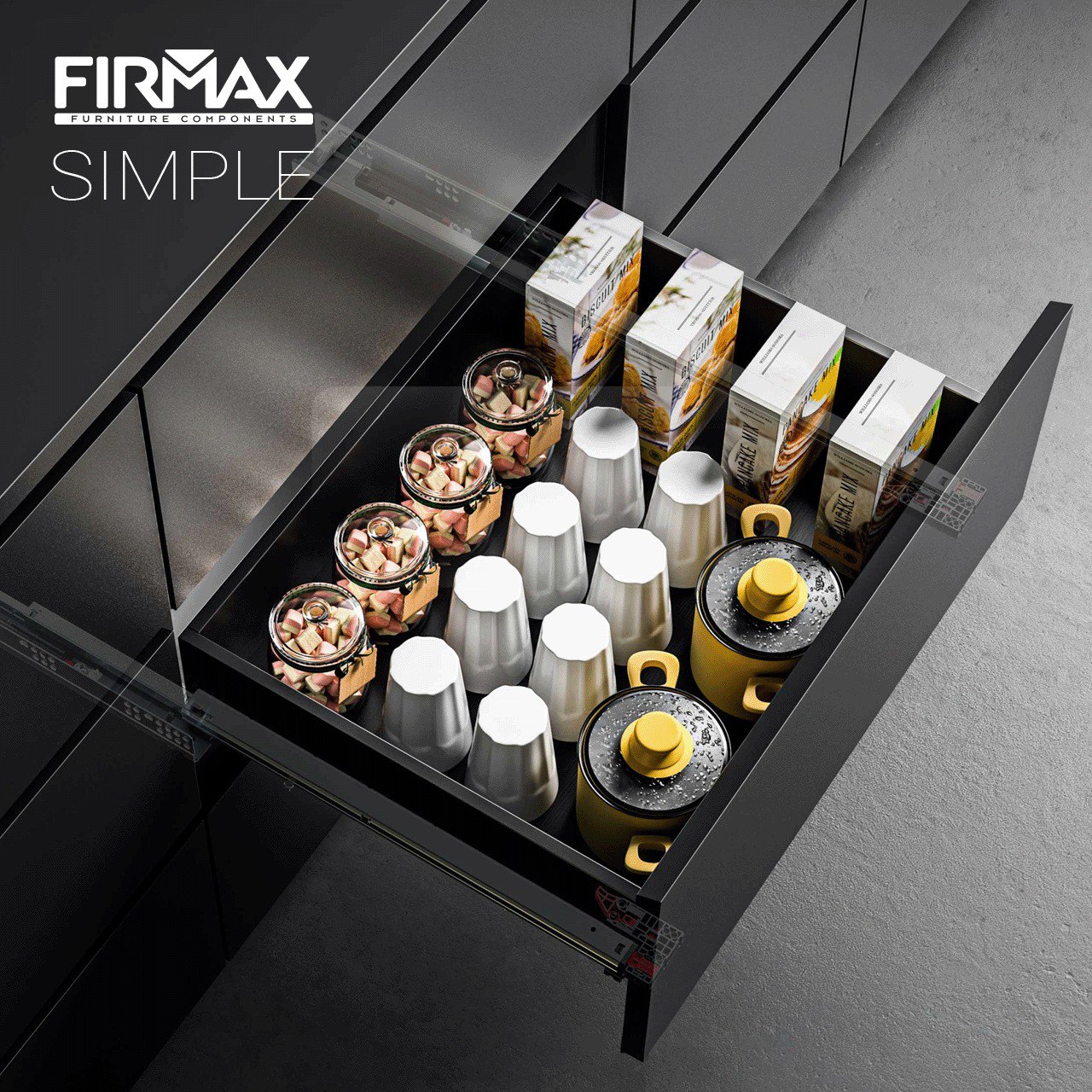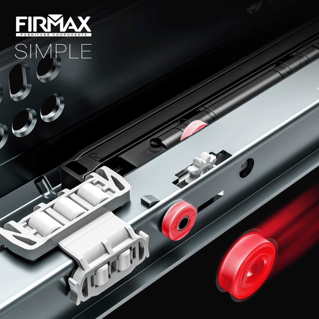 В производстве современной мебели направляющие скрытого монтажа стали базовым стандартом. Данные направляющие незаметны даже при выдвинутом ящике, поэтому выдвижной ящик полностью соответствует интерьерной концепции и сохраняет общий целостный стиль помещения. Благодаря этому достоинству производители используют эти направляющие в любых комнатах, в том числе в таких, где особенно важен безупречный внешний вид каждого элемента мебели. Серия Firmax Simple разработана как надежный инструмент для тех, кто ищет баланс между предсказуемым качеством и оправданной стоимостью.